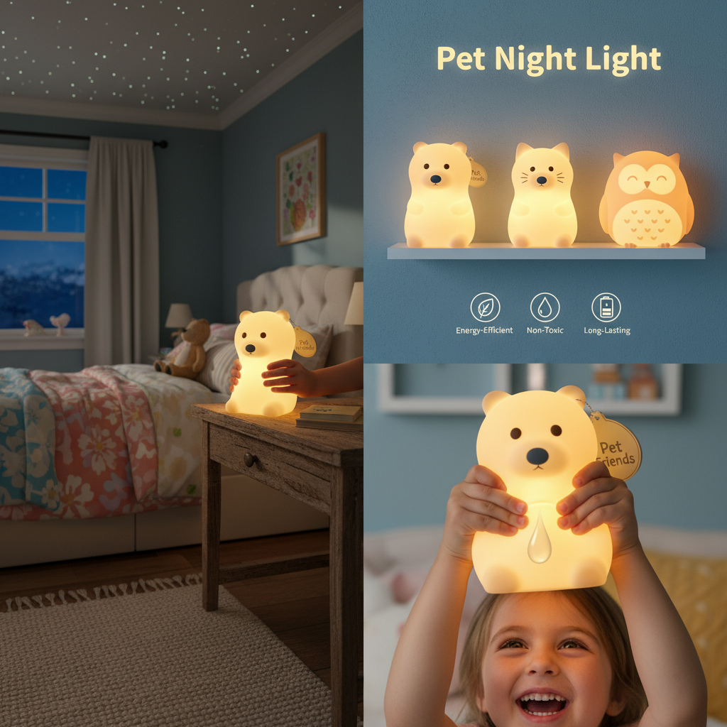 These charming pet night lights are specially designed for children who need extra comfort and reassurance at bedtime.